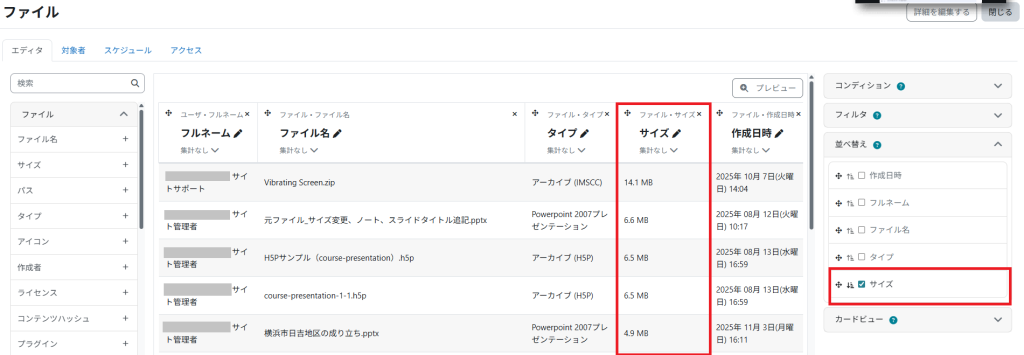 カスタムレポートを活用すると、ユーザーごとのファイル使用量を簡単に一覧できます。