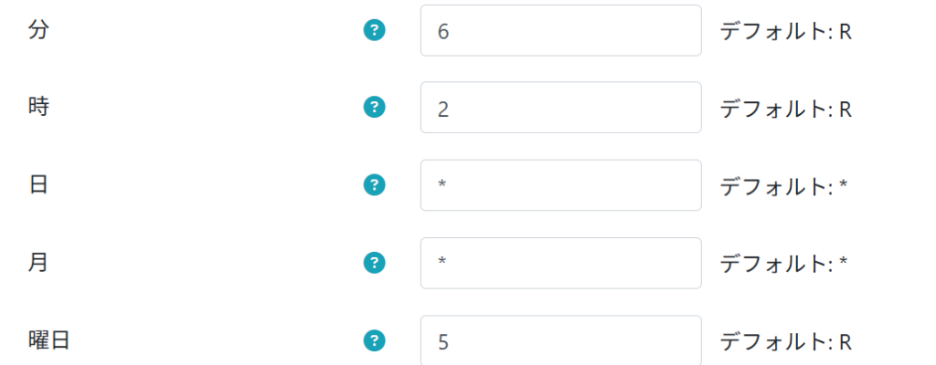 *は「すべて」を意味し、RはMoodleがランダムに設定した値(サーバー負荷を分散するため、タスクごとにずらして実行するためのもの)です。